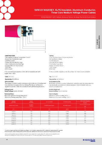 * Akım taşıma kapasiteleri maksimum iletken sıcaklığı 90 o C, hava sıcaklığı 30 o C, toprak sıcaklığı 20 o C, kablo serme derinliği 0,80 metre,