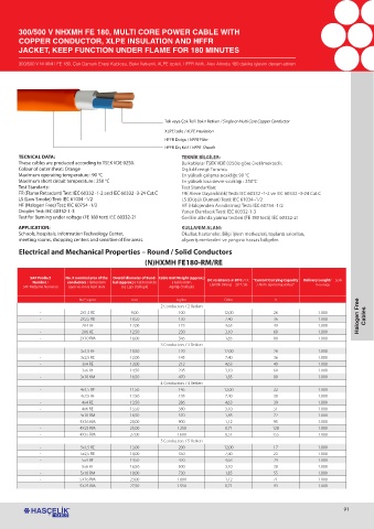 300/500 V NHXMH FE 180, Çok Damarlı Enerji Kablosu, Bakır İletkenli, XLPE izoleli, HFFR Kılıflı, Alev Altında 180 dakika işlevini devam ettiren