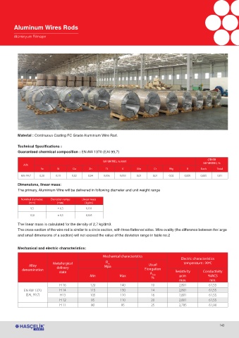 Guaranteed chermical composition : EN AW 1370 (EAI 99,7)