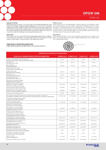 OPGW 346 mm² KORUMA İLETKENİ (PROTECTION CONDUCTOR)t 12 FİBER G-652-D 24 FİBER G-652-D 12 FİBER G-655-C 24 FİBER G-655-C