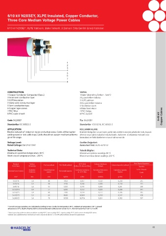 * Akım taşıma kapasiteleri maksimum iletken sıcaklığı 90 o C, hava sıcaklığı 30 o C, toprak sıcaklığı 20 o C, kablo serme derinliği 0,80 metre,